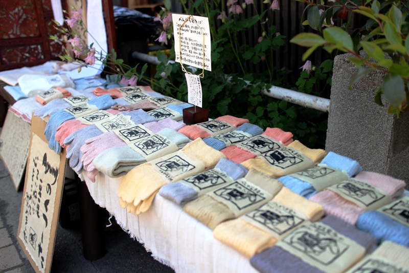 ひとつひとつ手染めした日本製のコットンやシルクの靴下たち。