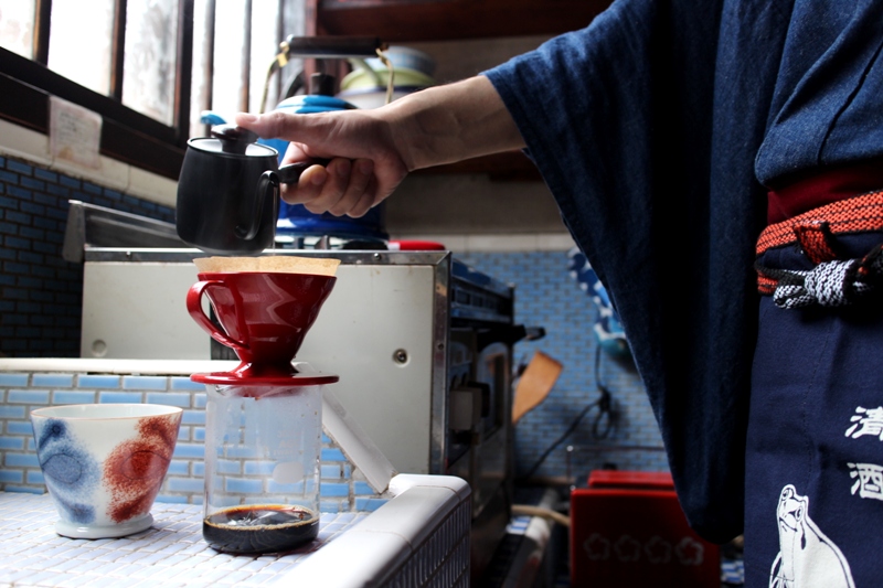 コーヒーは、ハンドドリップでビーカーに落ちてゆきます。