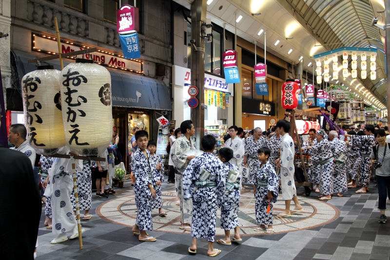 夕刻の寺町商店街にこだまする函谷鉾のお囃子・・・