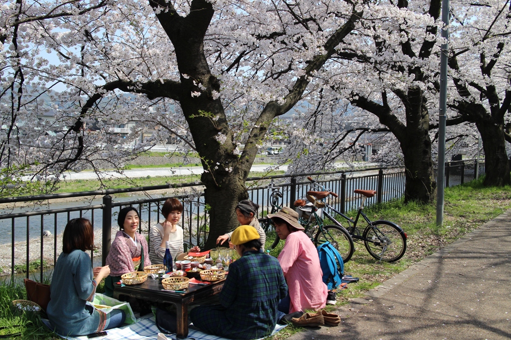 場所はいつもの、塩小路橋西詰めの鴨川沿いの桜並木。