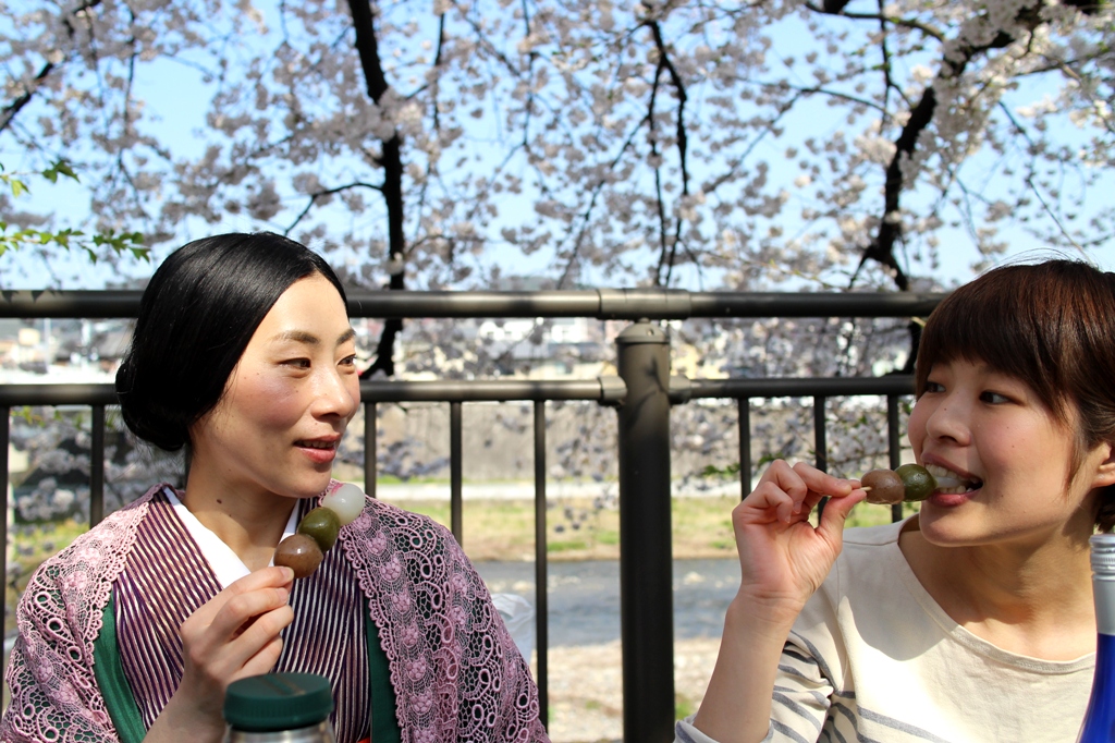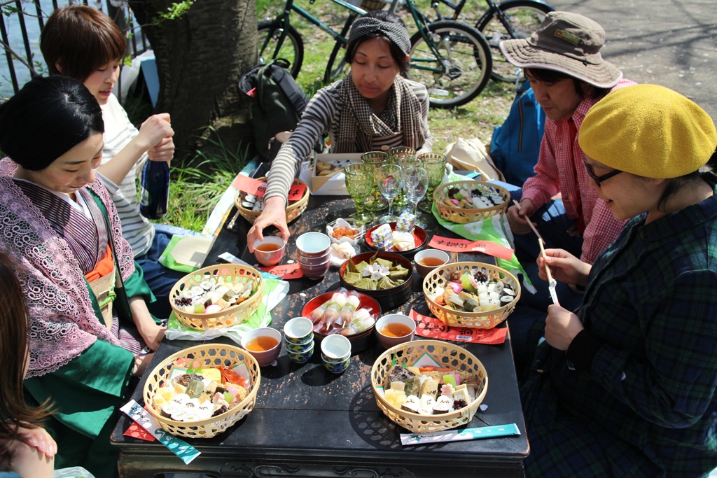 桜の下で、桜の塩漬けをいただくなんて。贅沢だ。