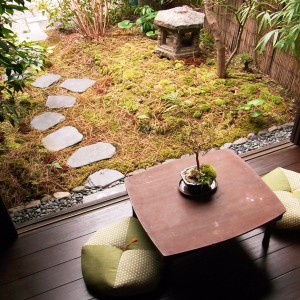 落ちた紅葉の葉っぱを、すべて片づけたお庭は、