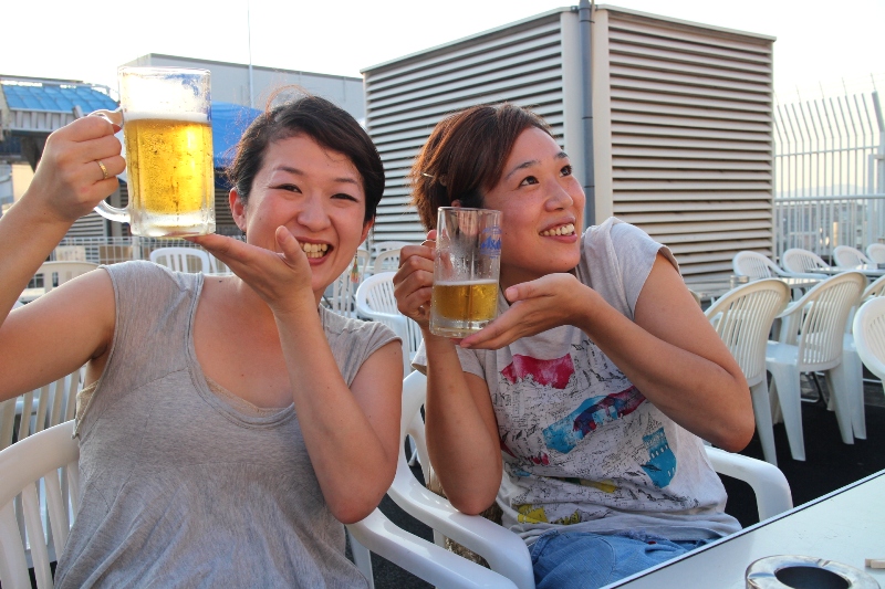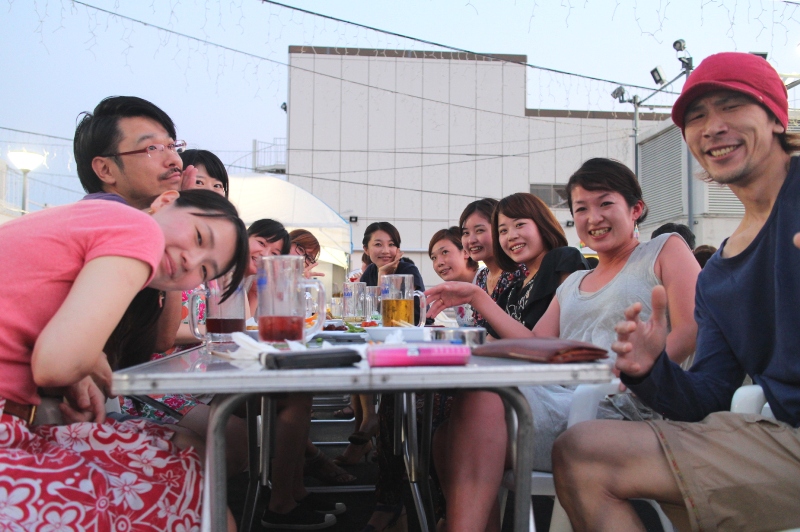京都の4つのゲストハウス仲間が高島屋の屋上ビアガーデンに集結。