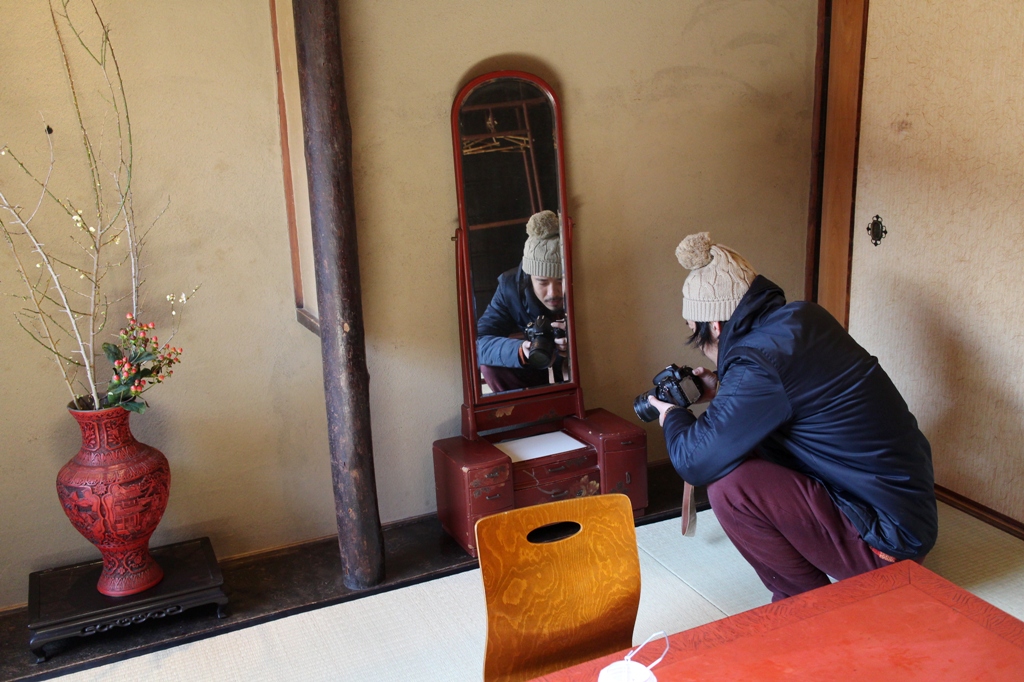 お部屋写真の撮影をするというので、梅の花を差し入れにお邪魔してきました。