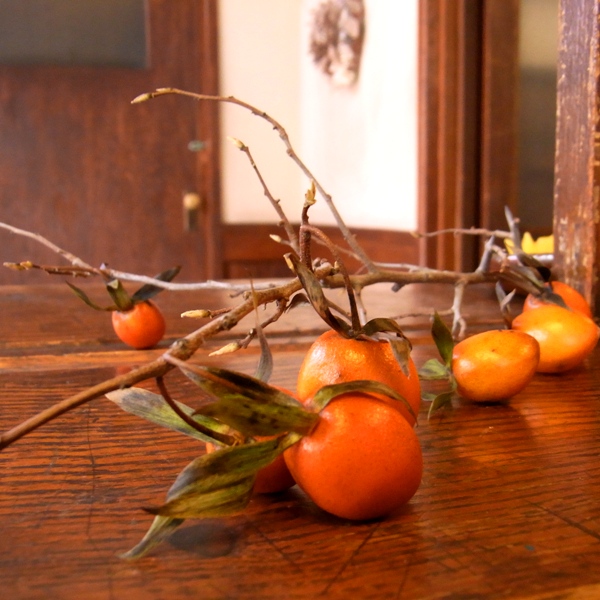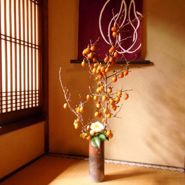 なぜか錺屋の床の間では、小ぶりの柿が豊作!