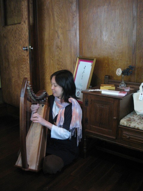 今朝は錺屋でハープの演奏を聞かせていただきました。