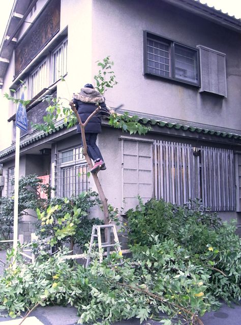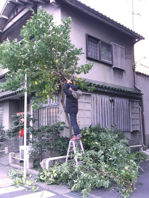 街中なので、そそくさと枝を細かくして葉っぱを集めてごみ袋に入れましたとさ。