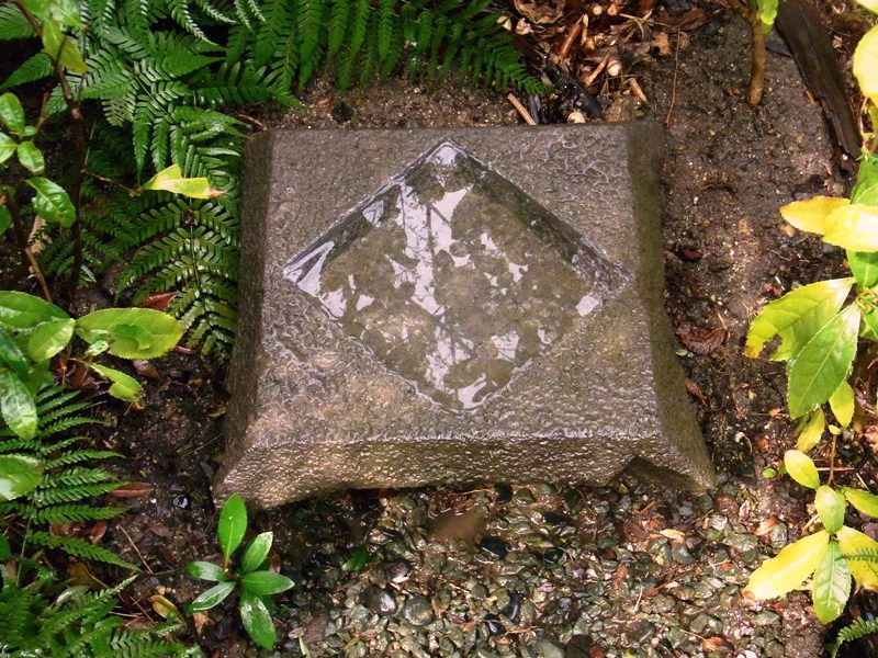 中身はひし形の手水鉢と靴脱ぎ石。