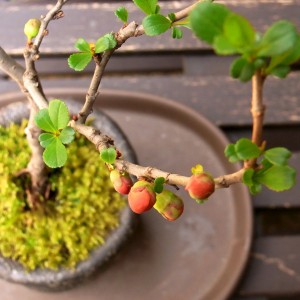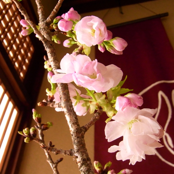 花壇の桃や、盆栽のぼけの花、床の間・・・などなど、