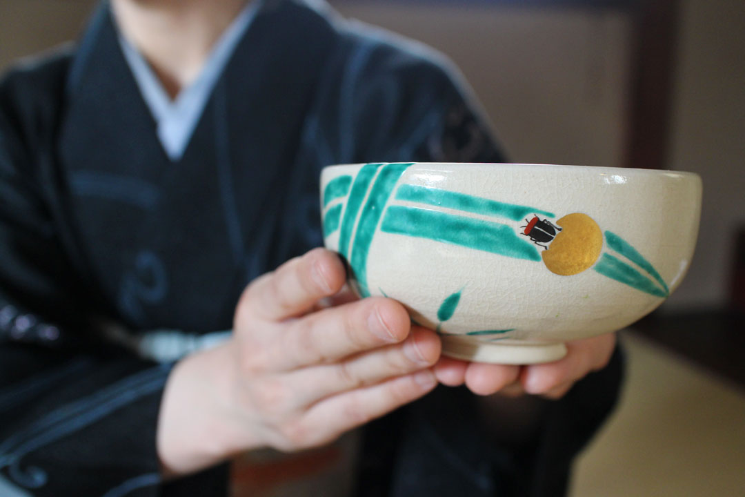 お茶碗には蛍がとまっていました。