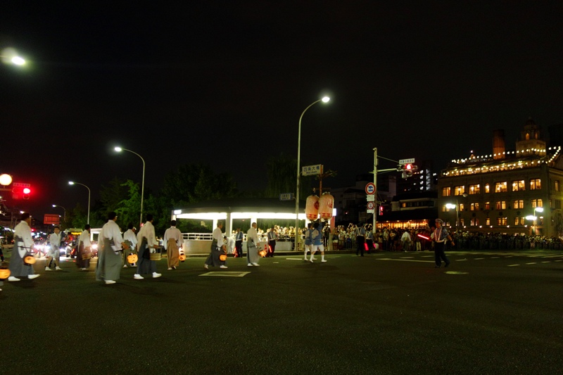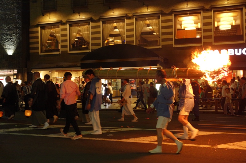 四条通りに燃えかす(炭ぽくなった竹)をばんばん落としていきます。