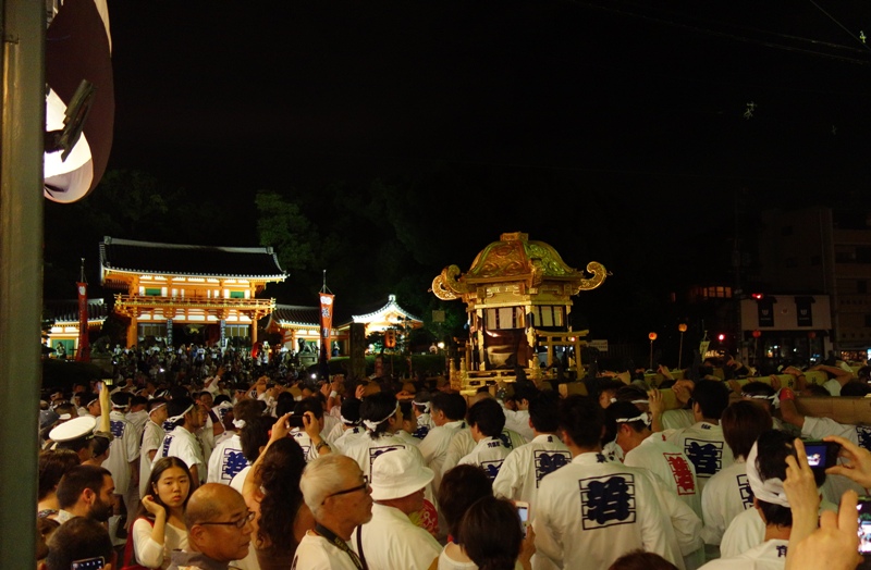 そして八坂神社から、道を清める大松明とお御輿が四条大橋の上までやってきます。