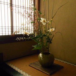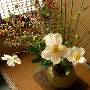 ススキに秋明菊と、すっかり秋模様。