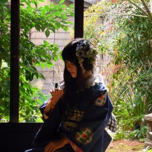 アンティークの着物と紫陽花の青いせかいに、うっとり。