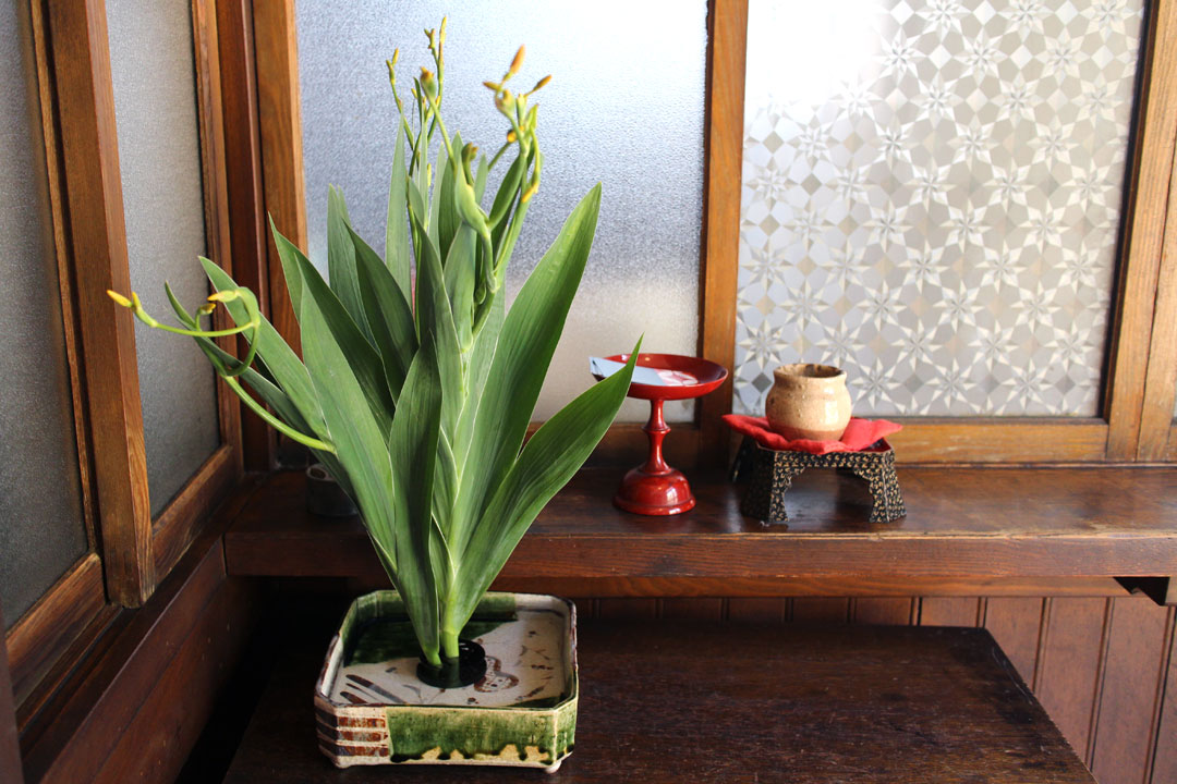 祭中、京都の玄関や床の間にかかせないお花、檜扇(ひおうぎ)。