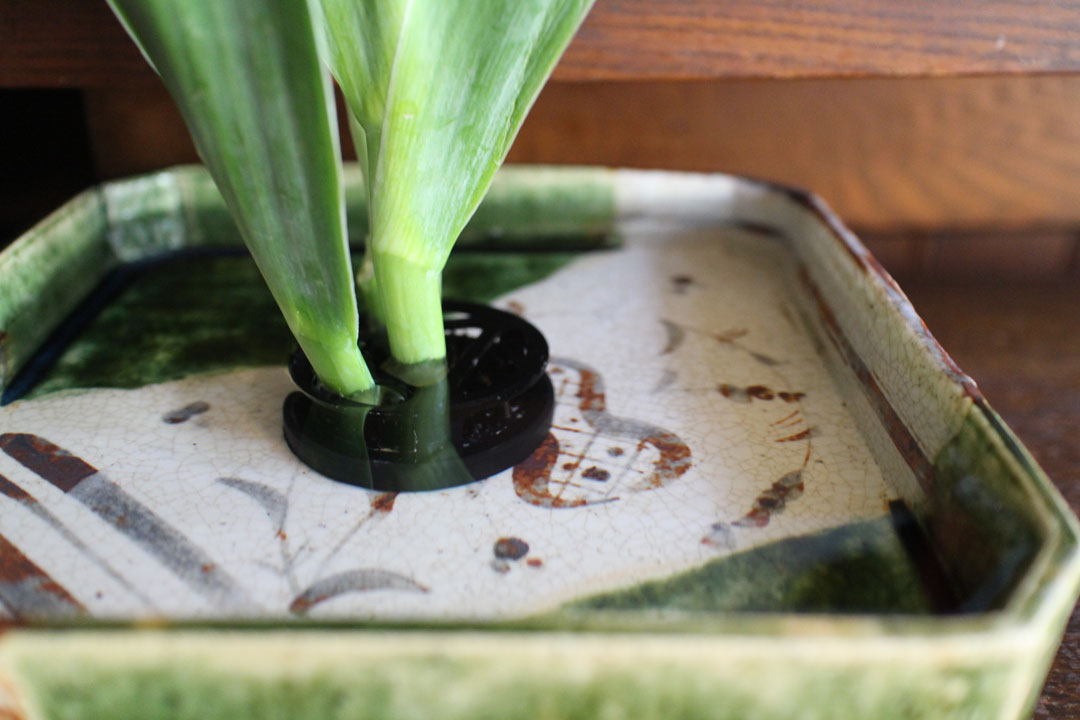 織部焼の菓子器を水盤がわりにして、挿してみました。
