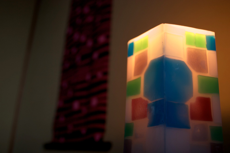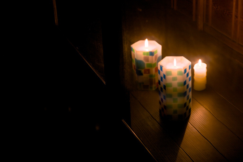 とある夕方錺屋に、完成したキャンドルが3点運ばれ、仮点灯が行われました。