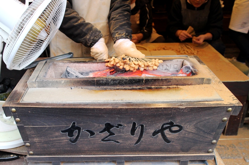 それを備長炭であぶって、焦げ目をつけ、白味噌のたれでいただきます。