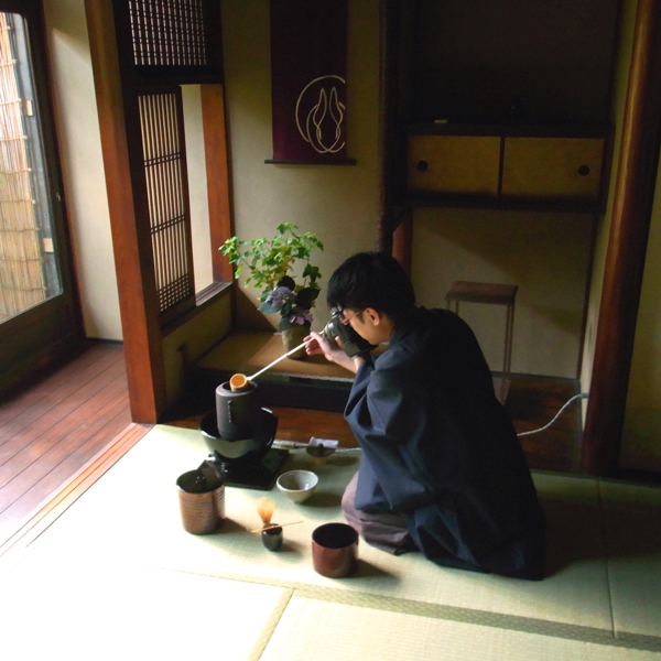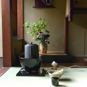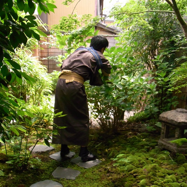 剪定して、お茶を点てながら、写真を撮る器用な空子さんの図。