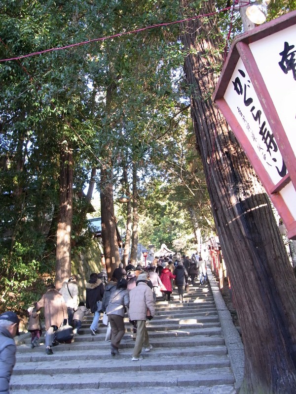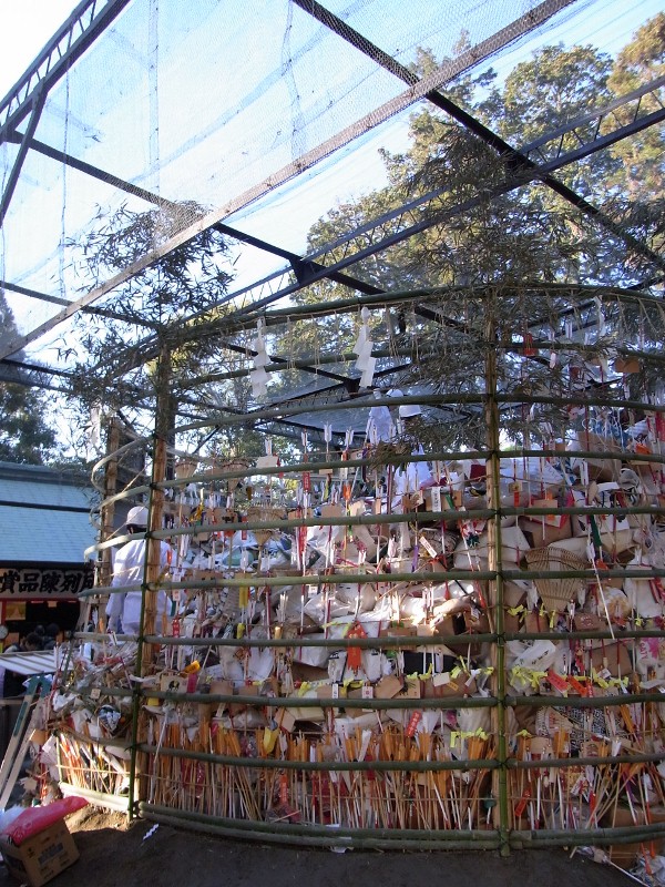 この階段の上でお正月飾りなどを収め、今夜いっせいに焼くというイベントが行われます。