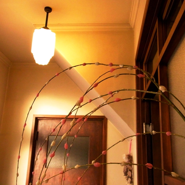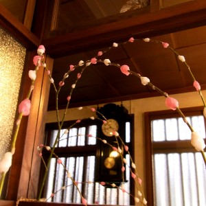 こちらも恒例の餅花ですが、今年はピンクです。可愛い。