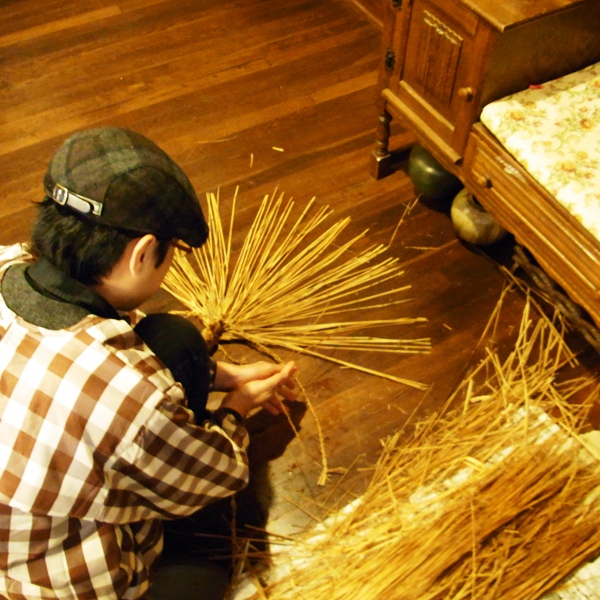 大掃除の合間に、空くんはしめ縄づくりにとりかかりました。