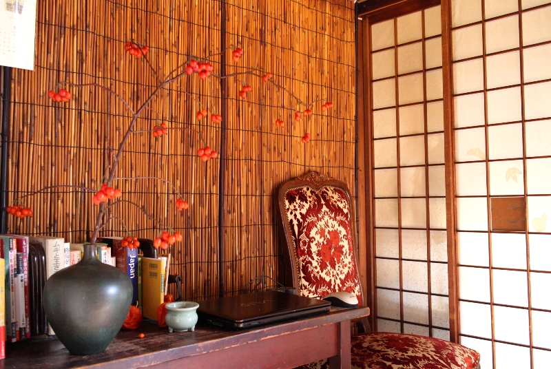 こちらは、京都の旅行本や雑誌、そしてインターネットが使える、ちいさな共有のお部屋。