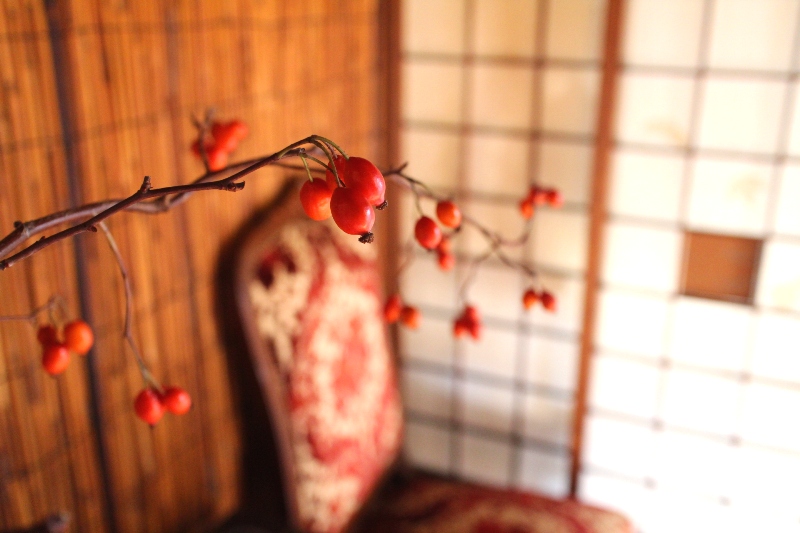 赤い実が垂れ下がって、パソコンが使いづらそう(笑)