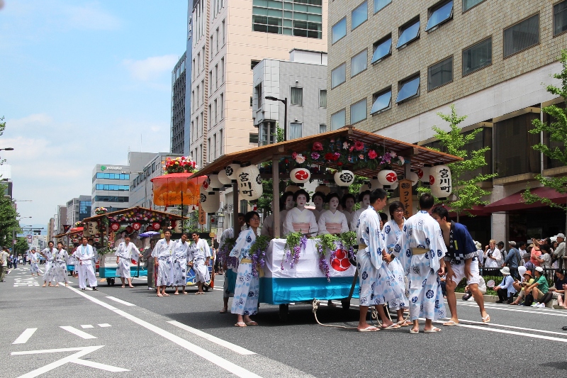 大船鉾を見送ると、女性や子供が多く、華やかな