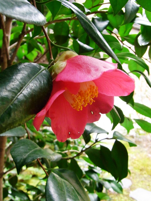 中庭の椿は、錺屋の1周年、2周年・・・と合わせて咲き、