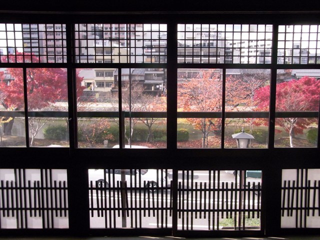 2階のお部屋から景色は、一面の紅葉と鴨川。