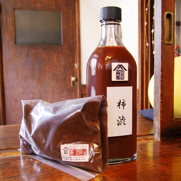 亜麻仁油とべンガラ、柿渋は京都の老舗、山中油店さんのもの。
