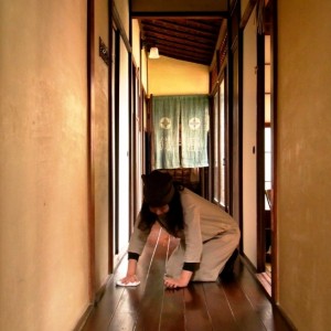 全館クローズさせていただいての、床の亜麻仁油ひき!
