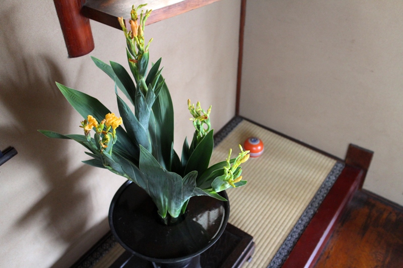 それでも館内にはいつでも緋扇(京都では、祇園祭に飾るお花*)を。