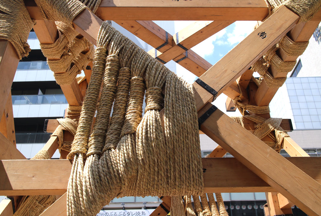 釘は使わず、組んで、縄だけで固定していく「縄がらみ」。