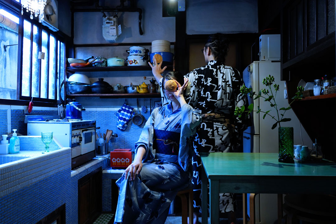 青いキッチンと息ぴったり。