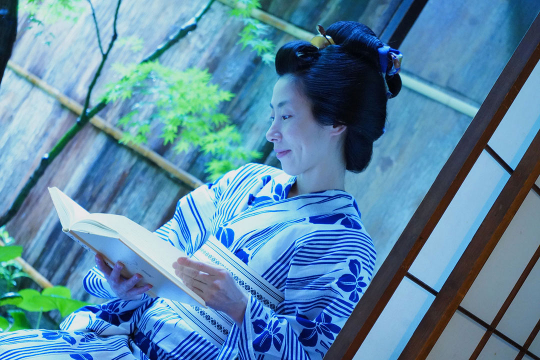 あゆみさんと私はそのまま寝て、日本髪(島田髷)を持たせました。