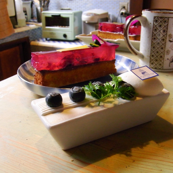 薔薇の花びらと香りたっぷりのジュレが乗っております。