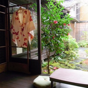 廊下と、トリプルルームの縁側は、どちらもお庭に面しております。