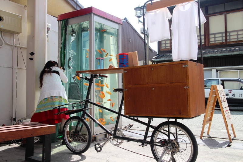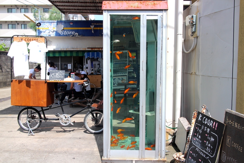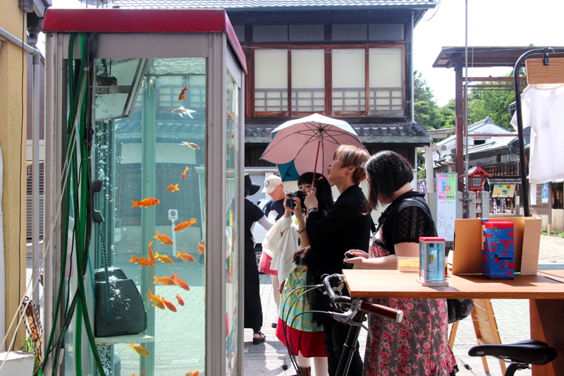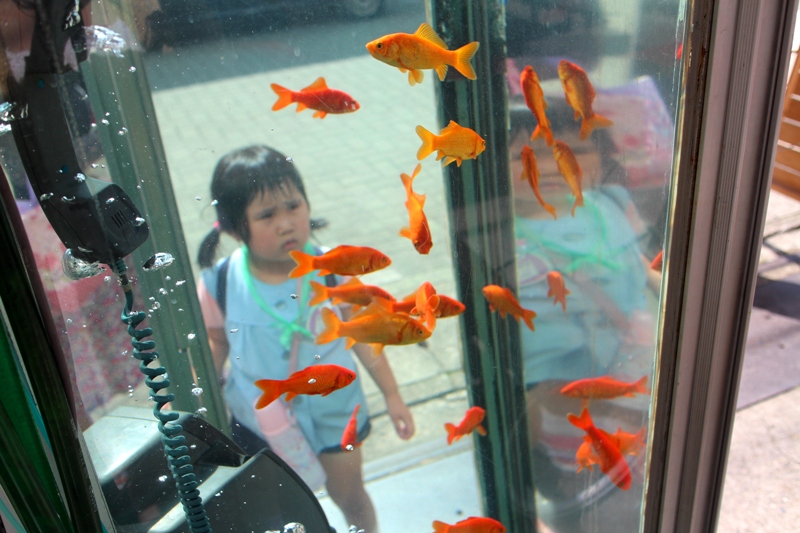電話ボックスの中を泳ぐ均金魚が有名なので、