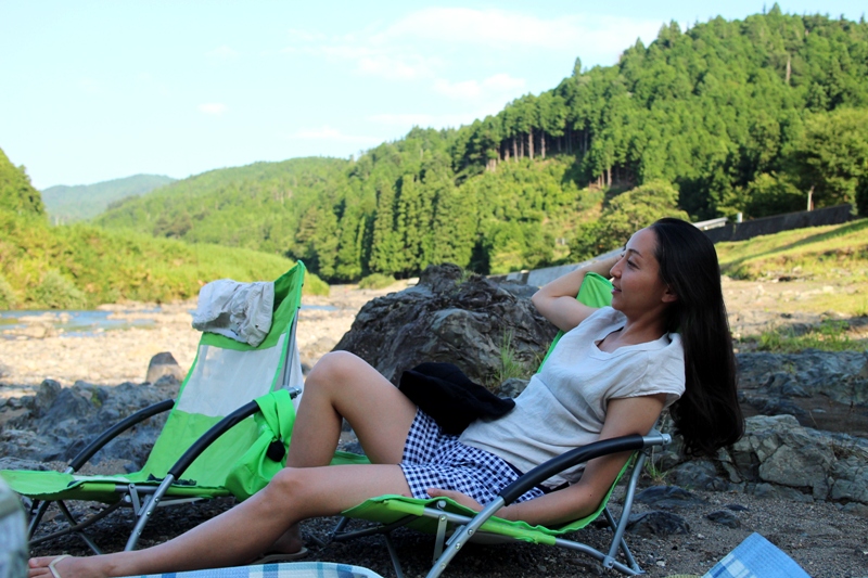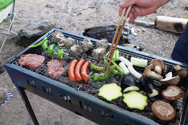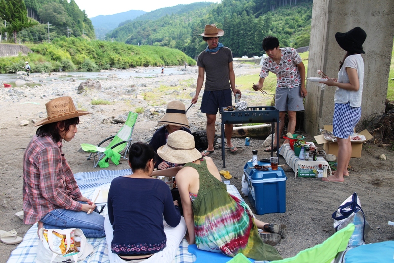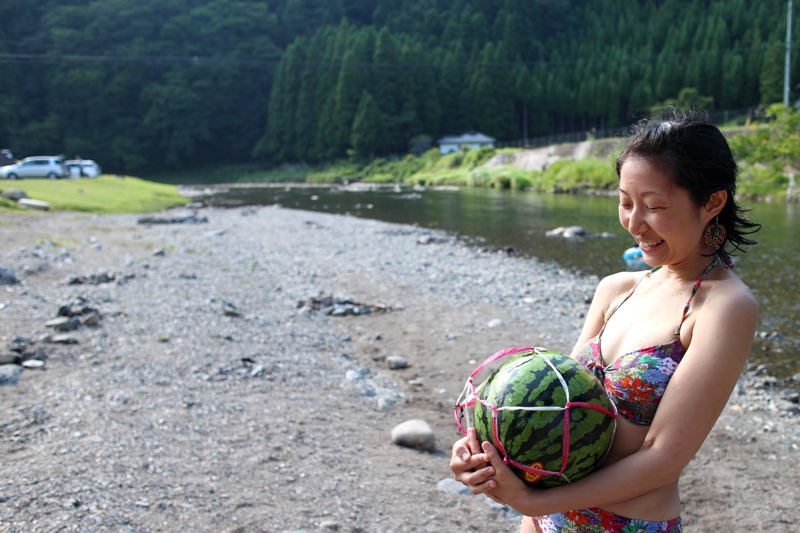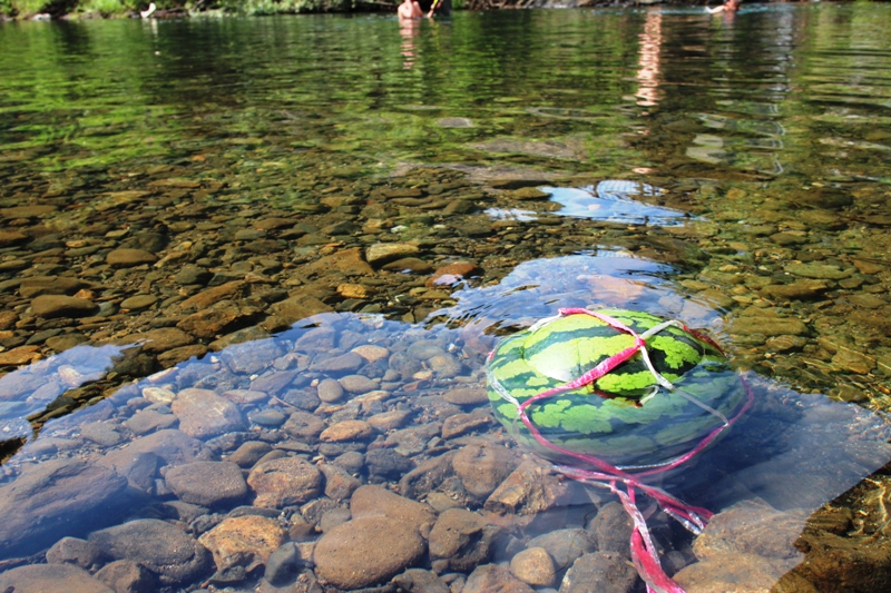 マシュマロを焼いたり、スイカを川で冷やしたり、