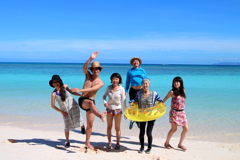 泳げないあゆみさんに浮き輪をかぶせて、みんなで沖のほうまでシュノーケリング!