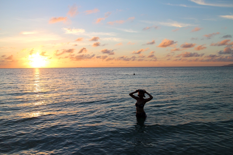 宿で夕飯をいただいて、もう一回ニシ浜へ。午後の海は冗談かと思うくらいお湯です。