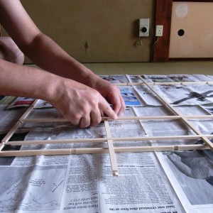 そして、麻の葉柄に透けて可愛い障子紙を貼りつけて、