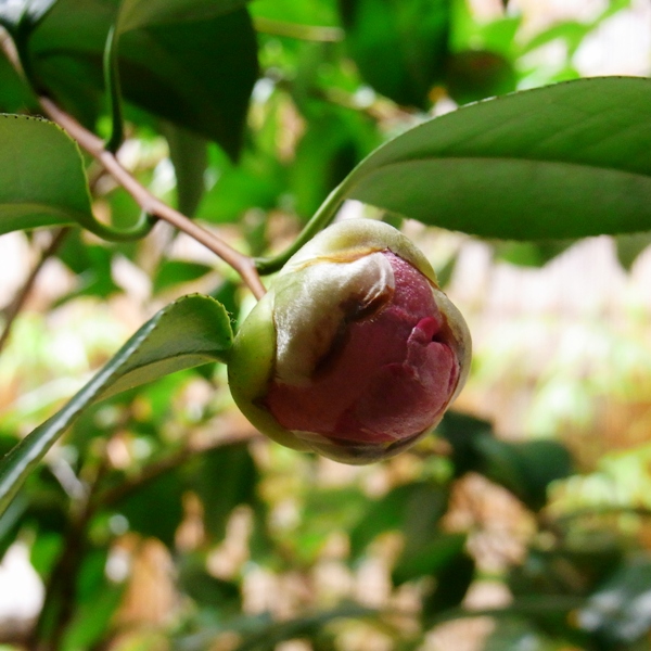 気がつけば、椿がつぼみをまんまるにふくらませていました。