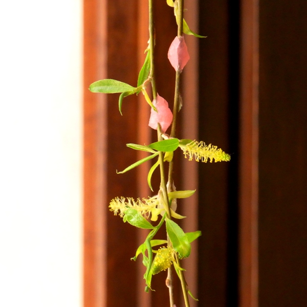 ヤナギが新芽をだしただけでなく、なんと花まで咲かせてしまいました。