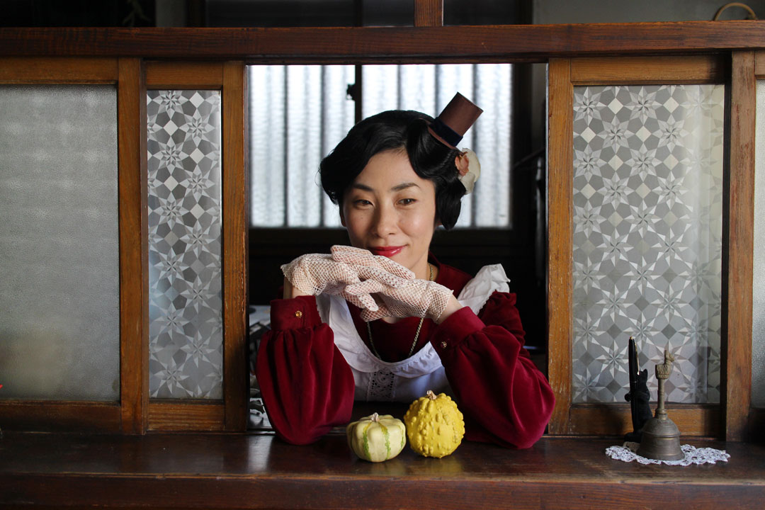 オモチャカボチャとシルクハットをかぶったあゆみさんがお出迎え。