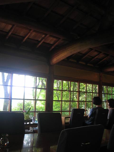 2階は4面がガラス張りで、山頂の緑に囲まれているよう。