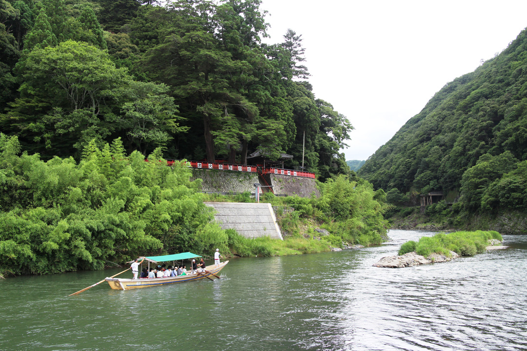 保津川下りの船が通ります。