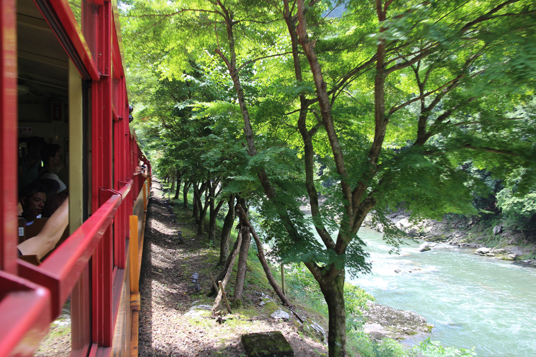 JR山陰線と違い、常に保津川沿いに、